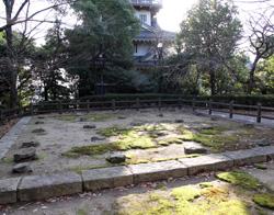 岩崎城築城初期の遺構である隅櫓の礎石跡。