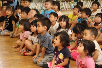 保護者会主催のサイエンス・アクロバットショーが10日、南部保育園で開催されました。園児たちは次から次へと繰り広げられる不思議な科学の実験に、飛び跳ねて喜んだり、大きな声で笑ったりと、楽しい時間を過ごしました。
