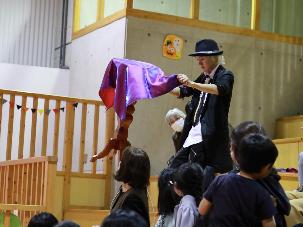 〈市民スタッフ 伊藤茂年〉地域交流事業である「マジックショー」が10月21日、岩崎台・香久山福祉会館で行われました。傘やパイロンを空中で操るパフォーマンスに始まり、ぐにゃぐにゃと曲がるフォーク、空中で絵柄がそろうキューブパズルやテーブルが浮くマジックなど、マジシャンのRYUHEI(中村龍平)さんの多彩であっと驚くマジックを、大人から子供まで幅広い年齢層の皆さんが楽しみました。