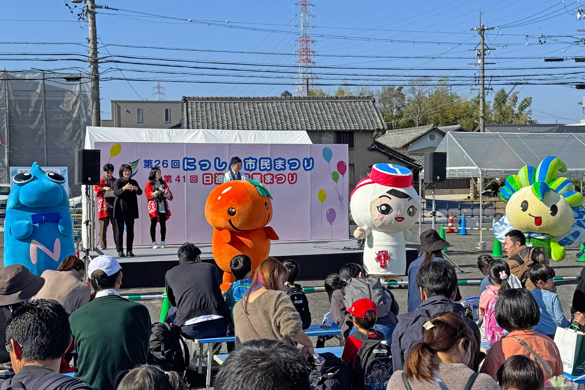<日進市 企画政策課>市内の保育園や幼稚園などで例年実施している「ニッシー劇場」が、11月21 日(金曜日)にハイランド白山幼稚園で開催されました。当日はホールにたくさんの元気なこどもたちが集まり、こどもたちがニッシーとふれあうにぎやかなイベントとなりました。