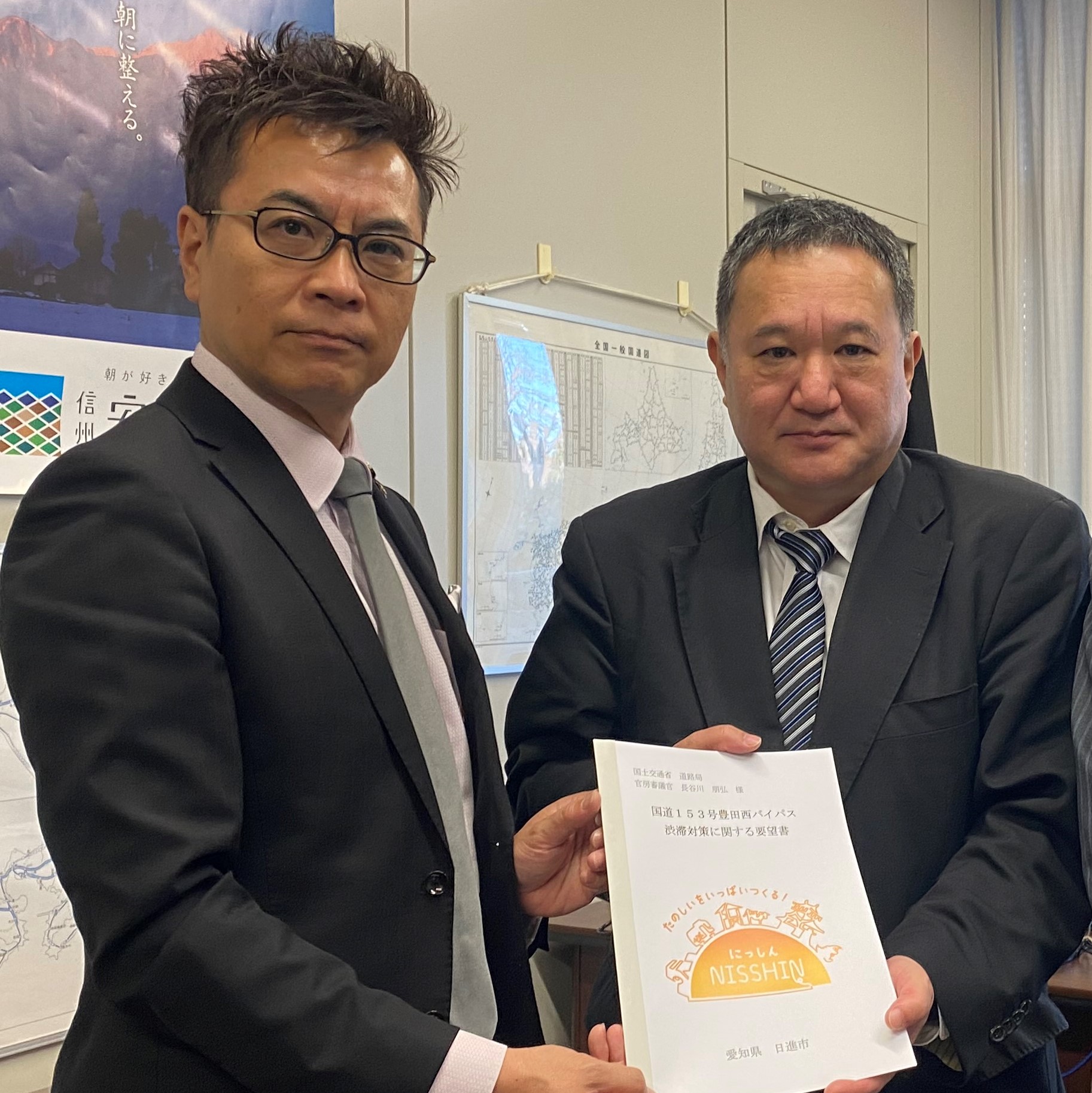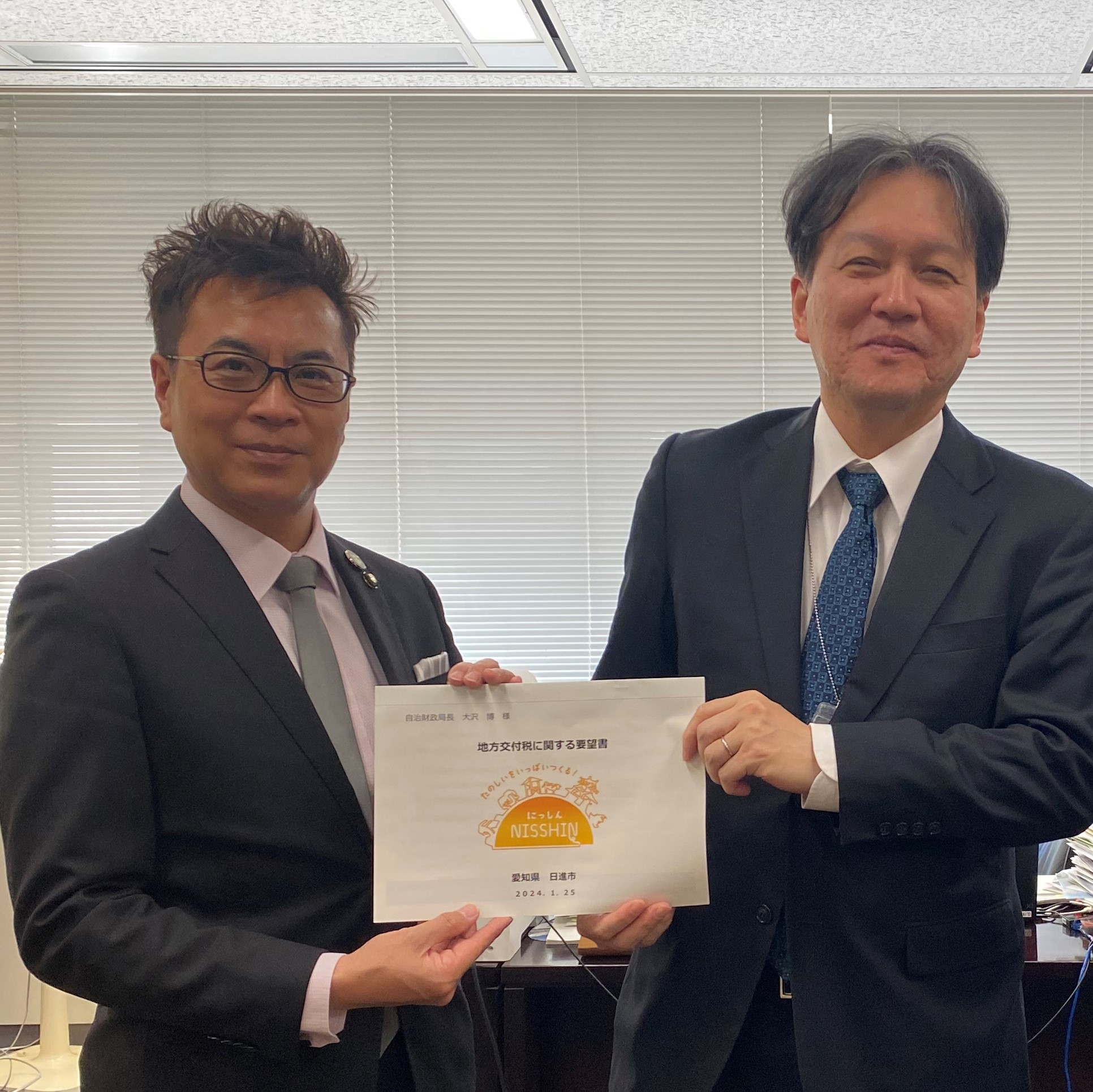 近藤市長が国土交通省に「国道153号豊田西バイパス渋滞対策に関する要望書」を、総務省に「地方交付税に関する要望書」を提出しました。国道の渋滞対策、特別交付税の配分など、本市に必要な事業や財政的な支援などを求めました。また、内閣府において自見はなこ内閣府特命担当大臣(沖縄及び北方対策、消費者及び食品安全、地方創生、アイヌ施策)と面会し、日進市の状況をお伝えして、市と国の役割について意見交換等を行いました。国に対し、よりよりまちづくりに向けて協力を求めました。