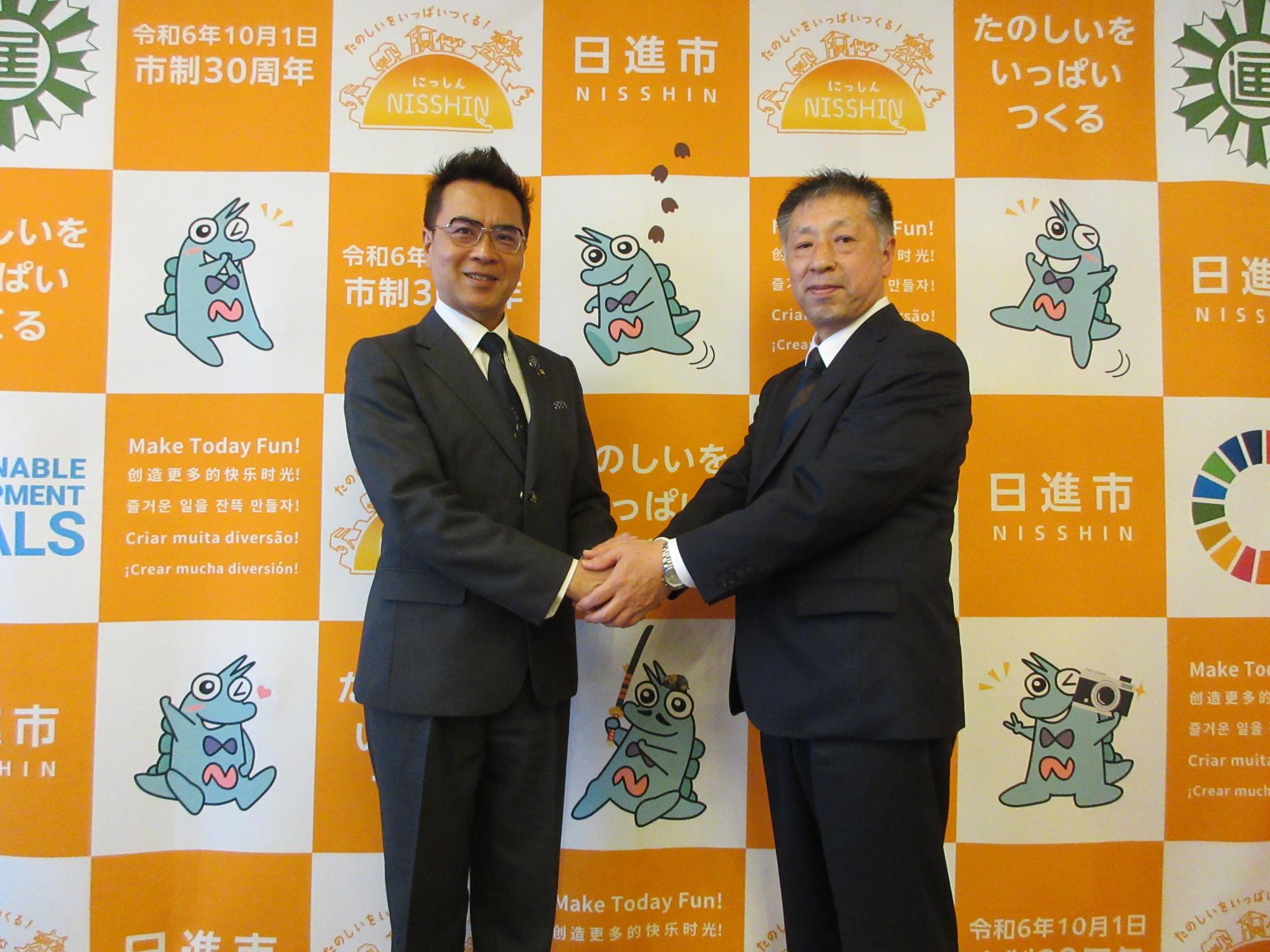 写真左から東邦ガス株式会社 尾張地域支配人 吉崎直己さん、近藤市長