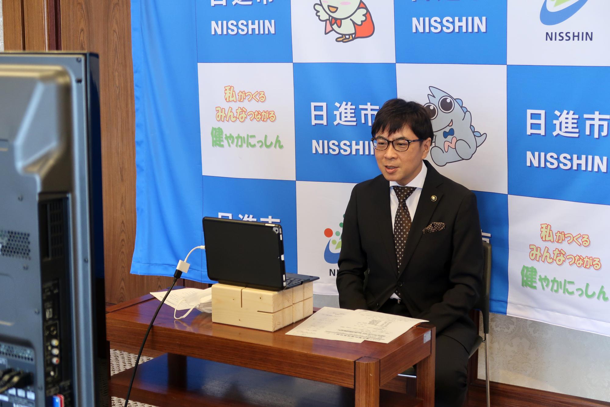 市長公室などの感染防止対策にはしっかりと取り組んだうえで、写真撮影時にはマスクを外すことがあります。