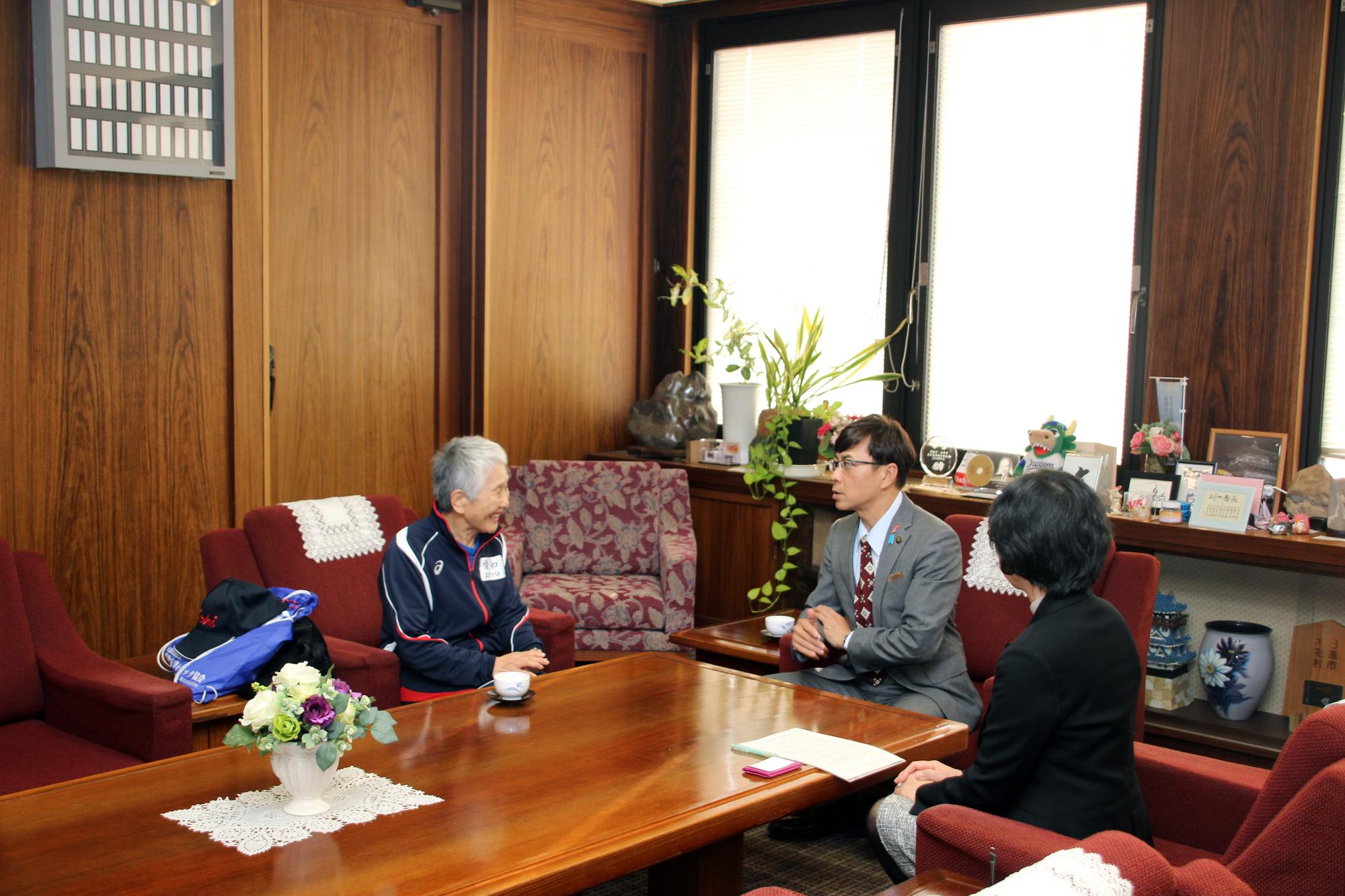 午前10時00分 ねんりんピック紀の国わかやま2019で入賞した末永邦代さんが表敬訪問