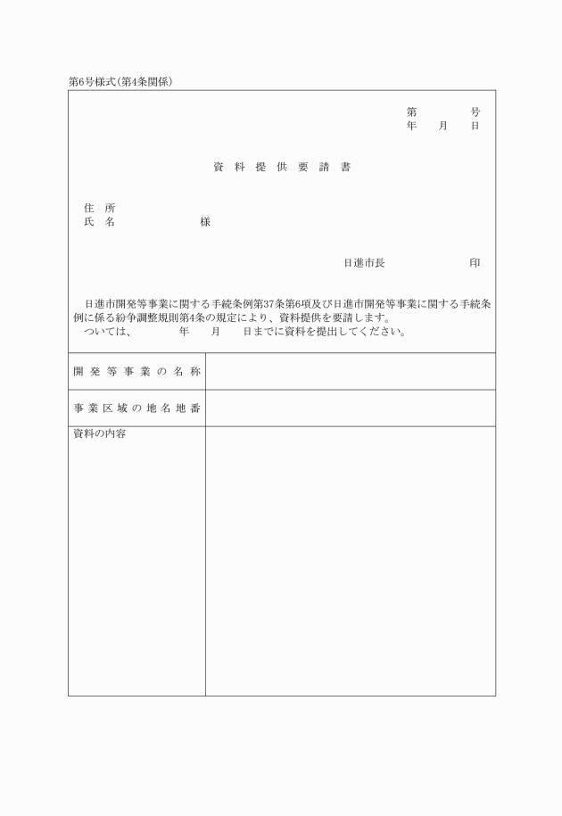 ○日進市開発等事業に関する手続条例に係る紛争調整規則